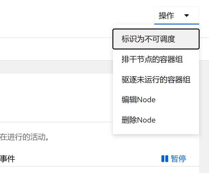 标识为不可调度/可调度 | 标识为不可调度后,容器组将不被调度到这个节点 |
