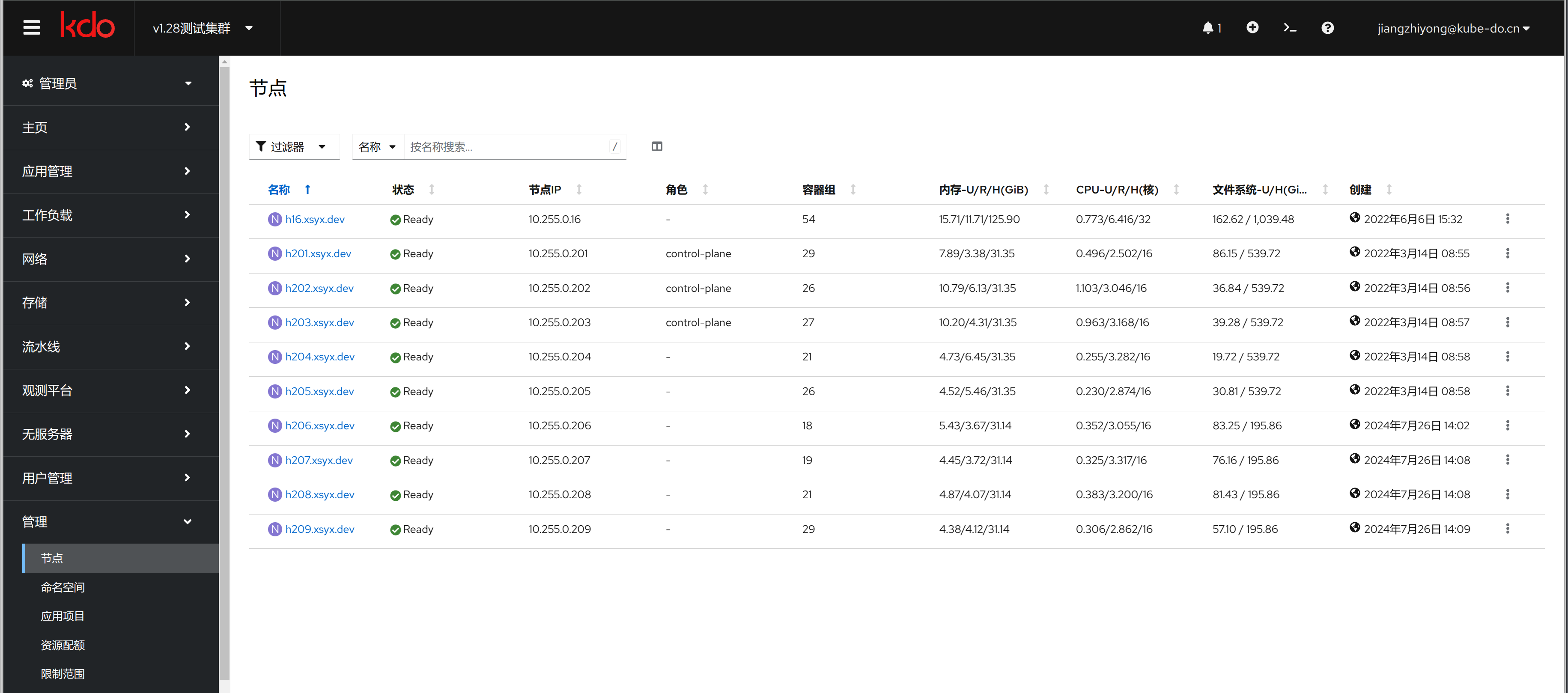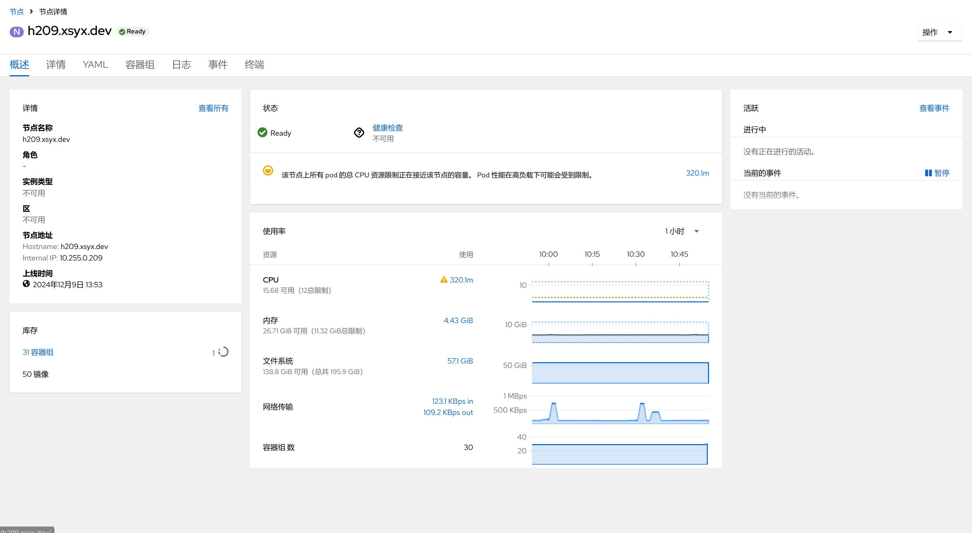 文件系统-U/H(GiB) | 节点的存储卷使用情况,U表示实际使用量,H表示总可使用量 |