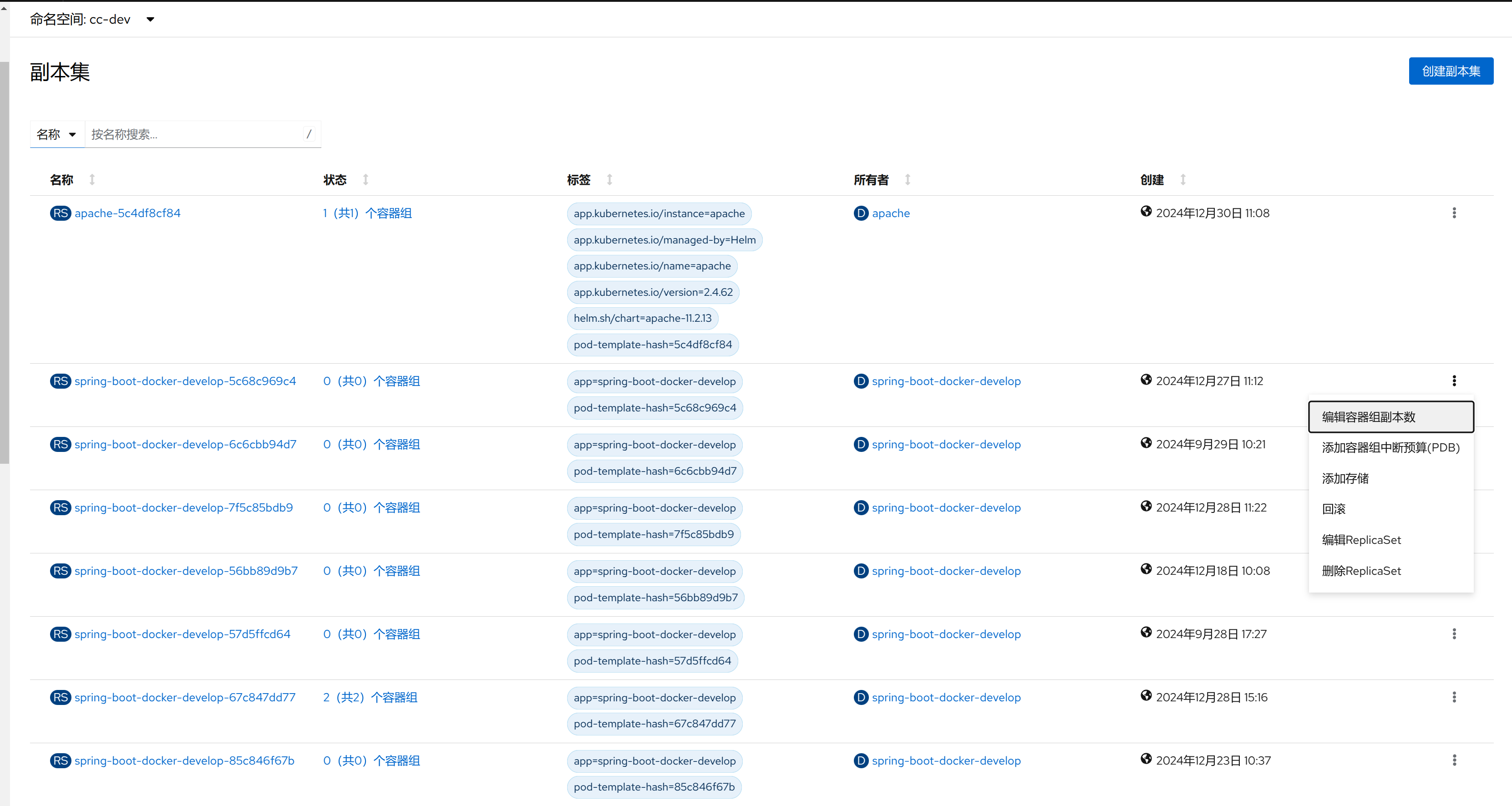 ReplicaSet是kubernetes中的一种副本控制器,简称rs,主要作用是控制由其管理的容器组,使容器组副本的数量始终维持在预设的个数。 它的主要作用就是保证一定数量的容器组能够在集群中正常运行,它会持续监听这些容器组的运行状态,在容器组发生故障时重启容器组,容器组数量减少时重新运行新的 容器组副本。 更多信息
