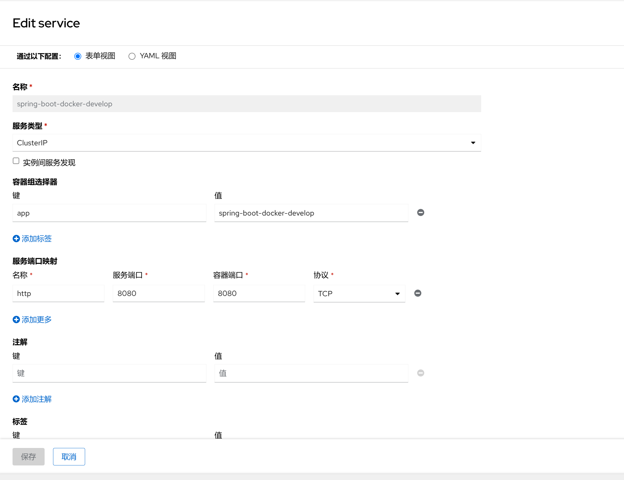 - ExternalName 将服务映射到 externalName 字段的内容(例如,映射到主机名 api.foo.bar.example)。 该映射将集群的 DNS 服务器配置为返回具有该外部主机名值的 CNAME 记录。 集群不会为之创建任何类型代理。