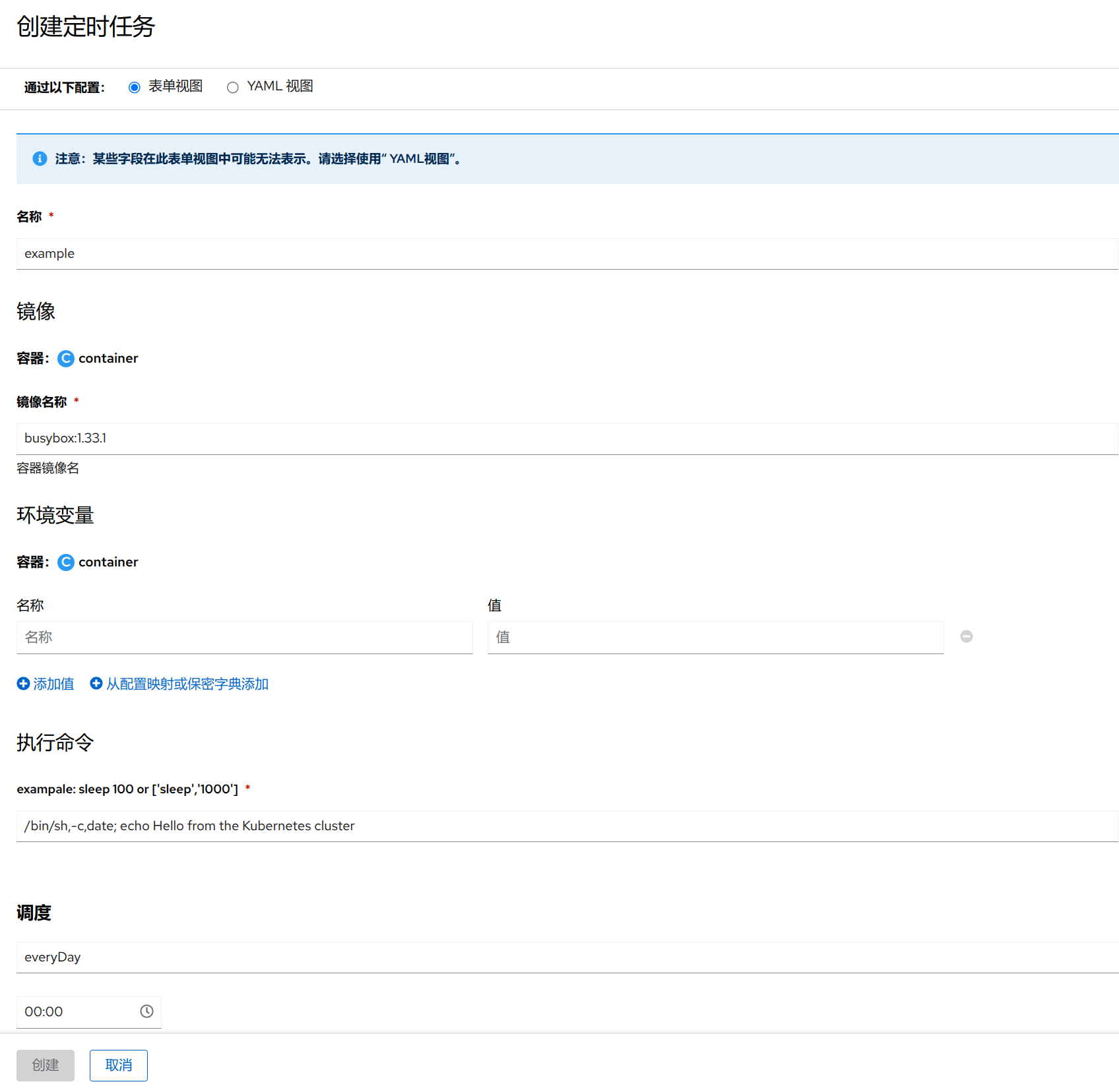 计划任务(CronJob)创建基于时隔重复调度的 Job。 CronJob 用于执行排期操作,例如备份、生成报告等。 一个 CronJob 对象就像 Unix 系统上的 crontab(cron table)文件中的一行。 它用 Cron 格式进行编写, 并周期性地在给定的调度时间执行 Job