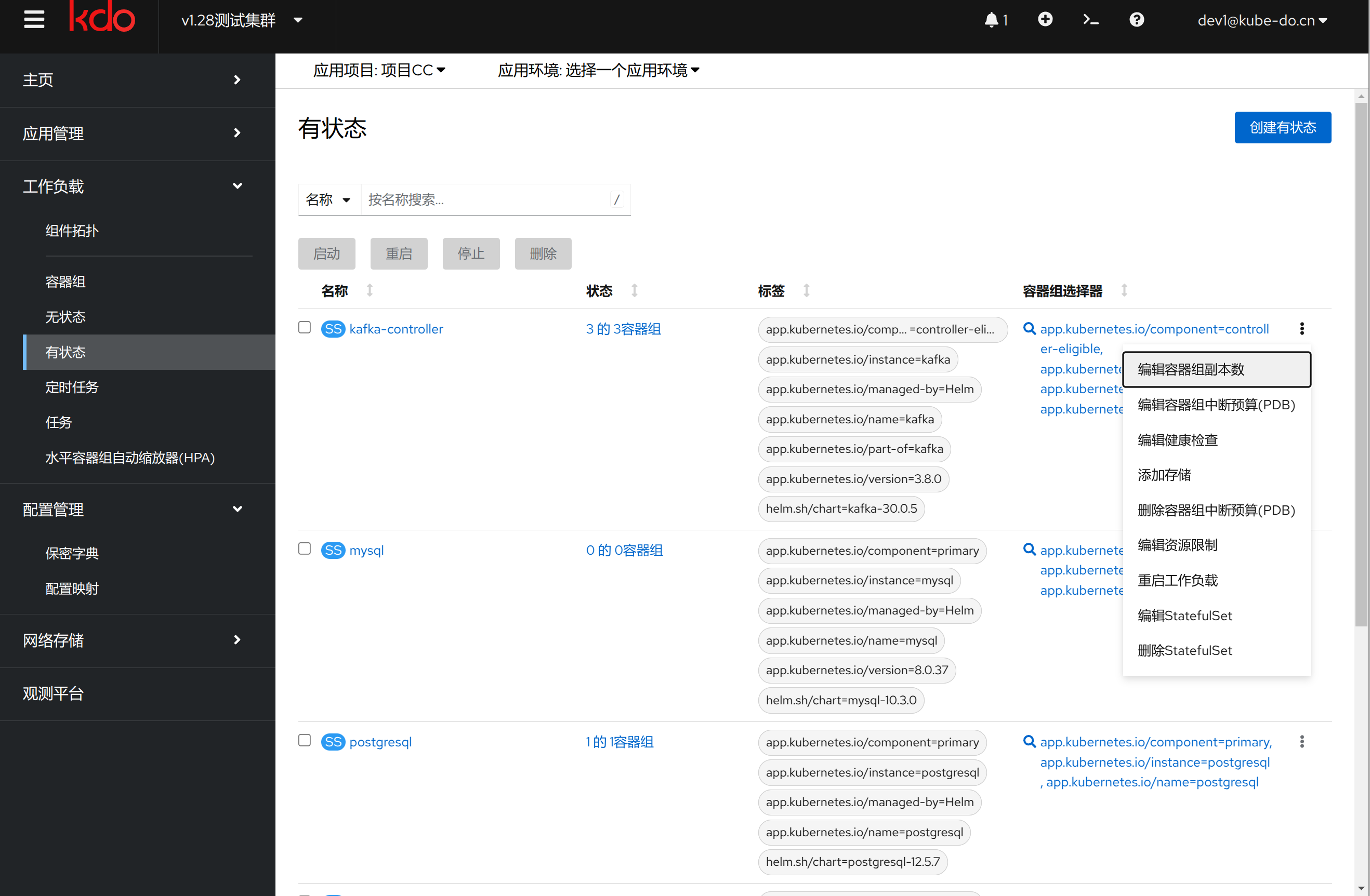 操作有状态应用基本也和无状态应用一样,只是有些不适合有状态应用菜单没有显示,可以参考操作无状态应用