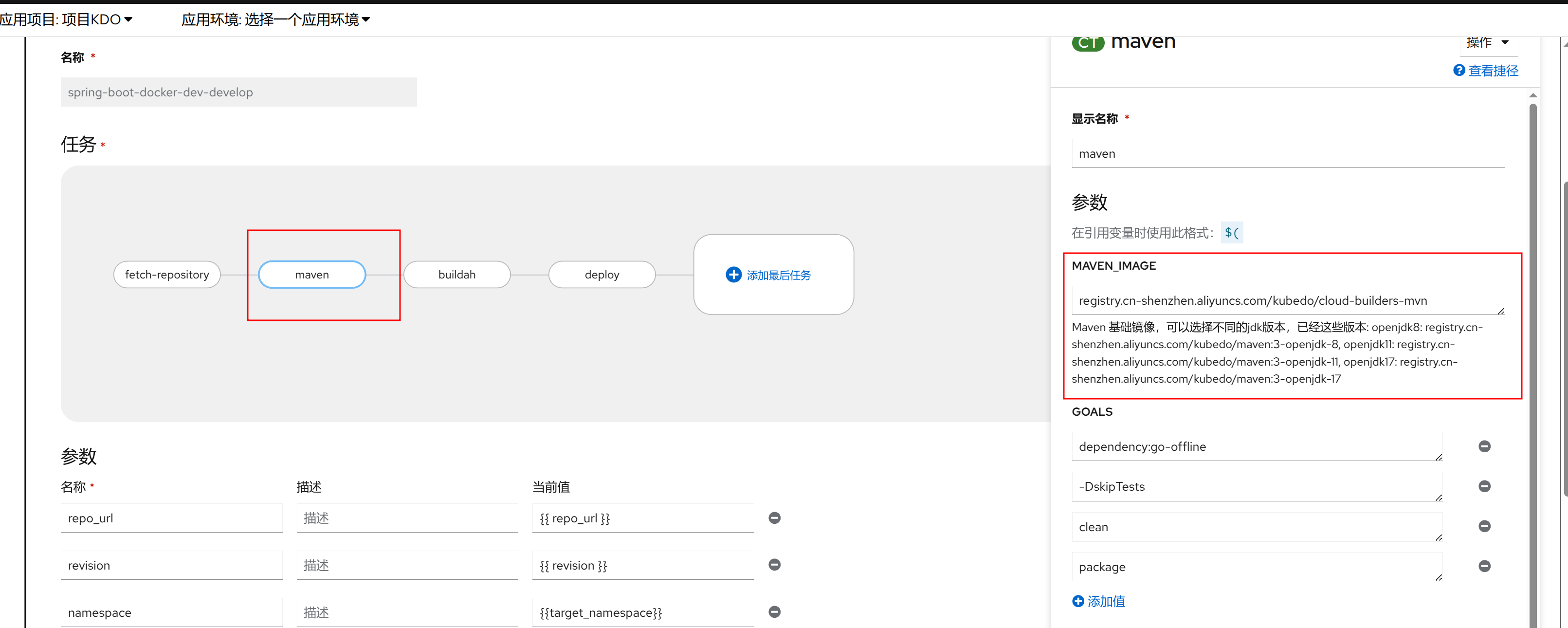 ,如果有需要,可以修改其他端口。 - 在自动分支流水线,选择对于应的分支进行流水线构建,比如