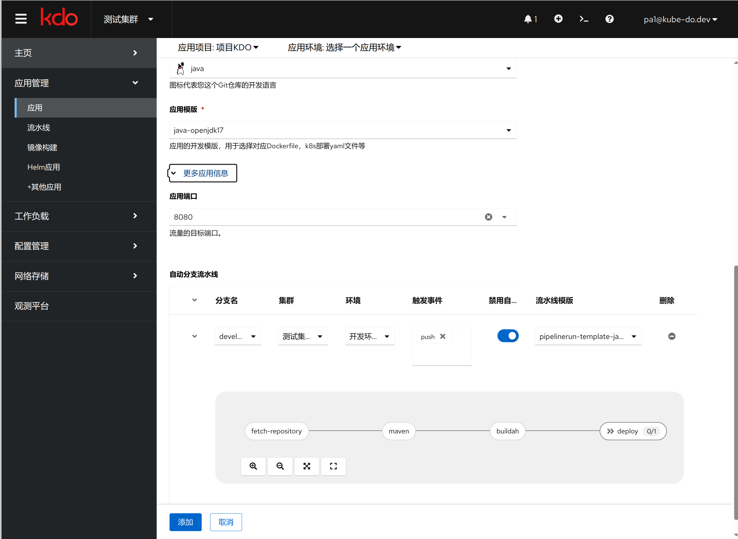 的可以是多对多的关系,就是一个分支可以部署到多个环境上,一个环境也可以部署多个分支。 - 选择完成后,点击添加,应用创建就完成了。