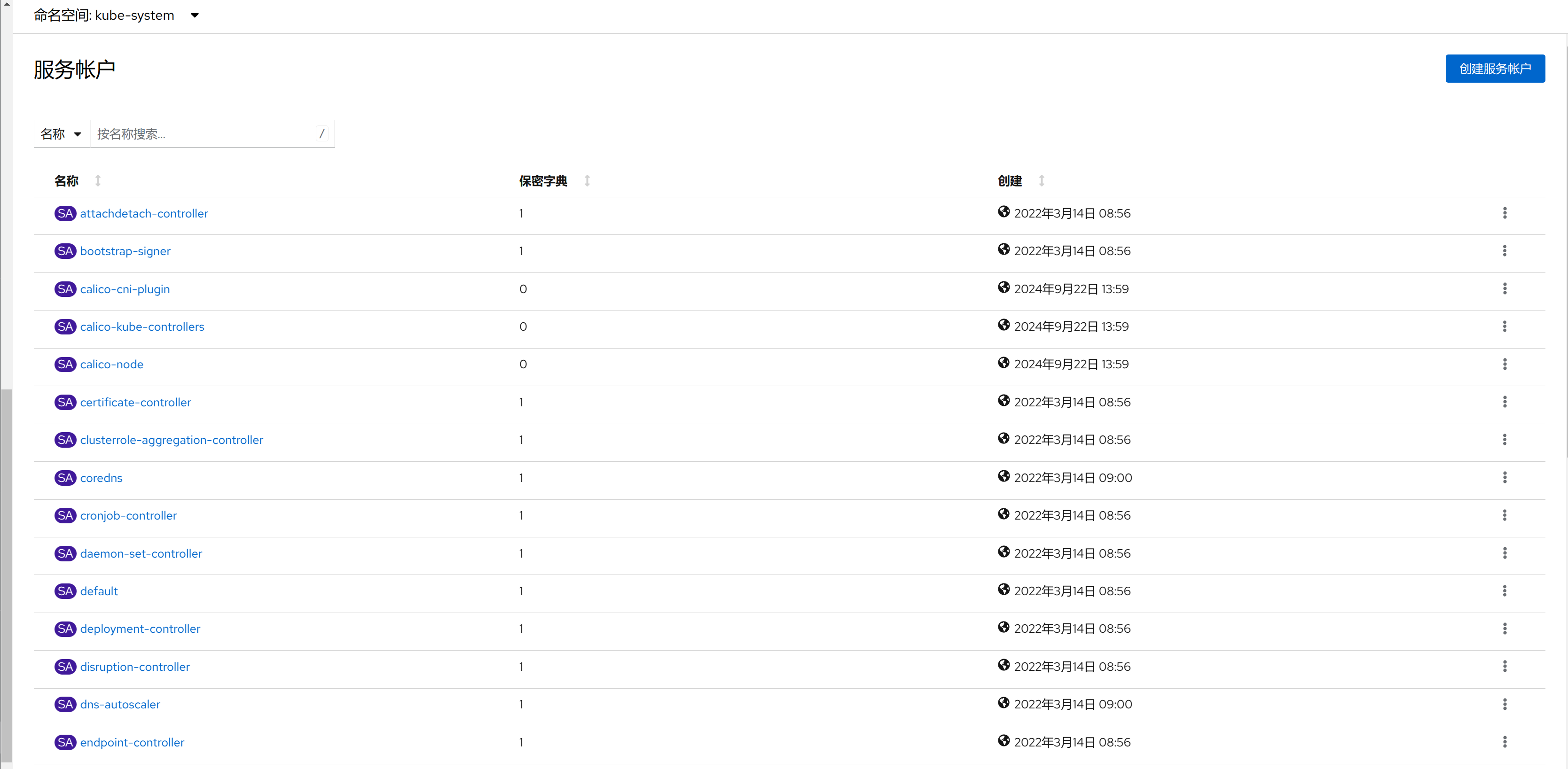 服务账号(ServiceAccount)是在 Kubernetes 中一种用于非人类用户的账号,在 Kubernetes 集群中提供不同的身份标识。 应用 Pod、系统组件以及集群内外的实体可以使用特定 ServiceAccount 的凭据来将自己标识为该 ServiceAccount。 这种身份可用于许多场景,包括向 API 服务器进行身份认证或实现基于身份的安全策略。 服务账号以 ServiceAccount 对象的形式存在于 API 服务器中。